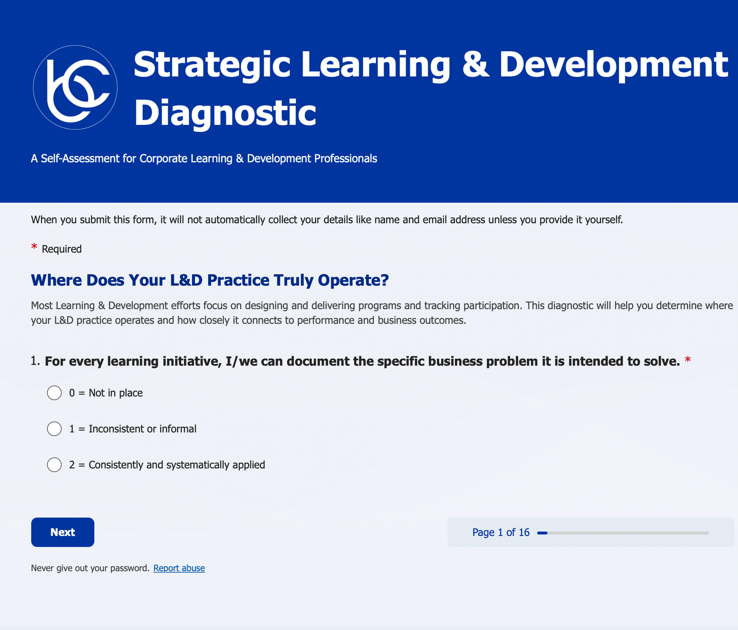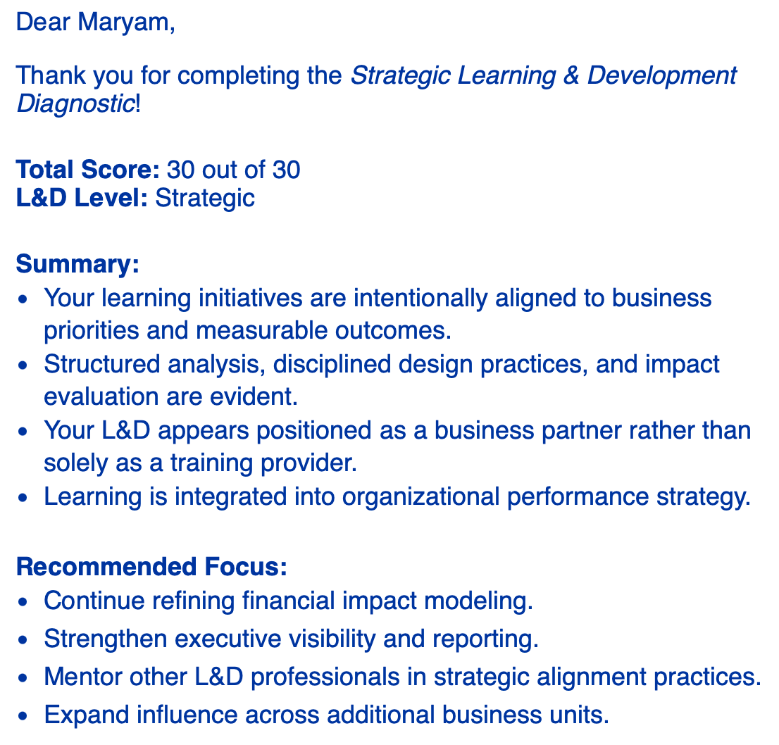 The FREE Strategic Learning & Development Diagnostic is designed to help you identify whether your current approach to learning and development: